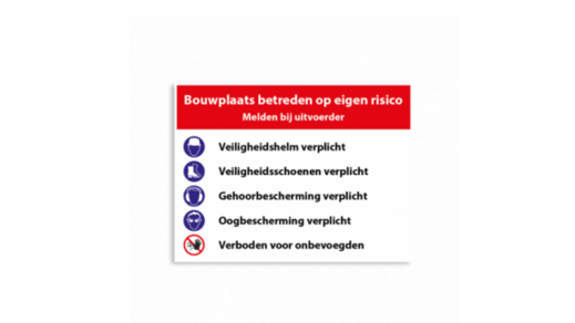 Gemakkelijk te monteren op de bouwhekken. Veel verschillende soorten veiligheidsborden altijd op voorraad.